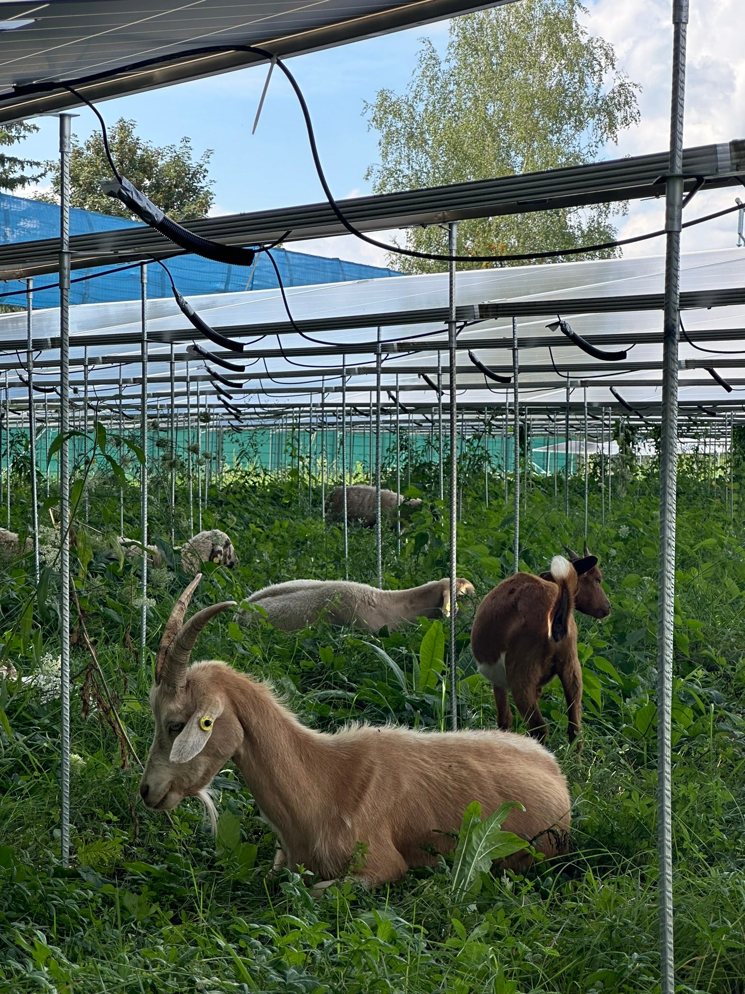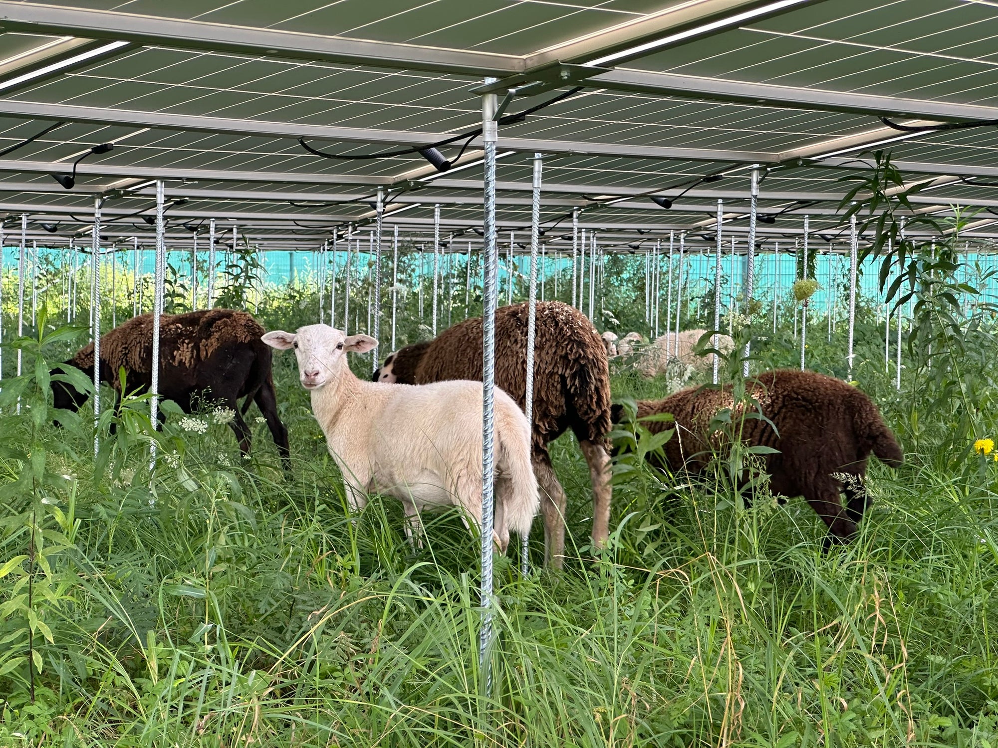 Weite Sichtflächen für Tiere und Natur: Die offene Struktur der Anlage bietet Tieren wie Schafen und Geflügel großen Freiraum und fördert das Wachstum von schattentoleranten Pflanzen darunter.